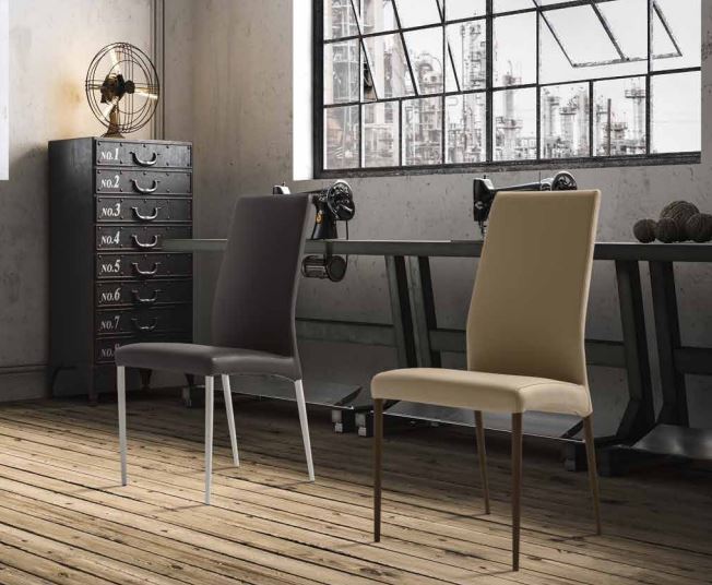 Chaise Bond de Zamagna avec structure en acier peint en différentes couleurs et assise rembourrée, recouverte de divers matériaux et finitions disponibles en plusieurs couleurs.