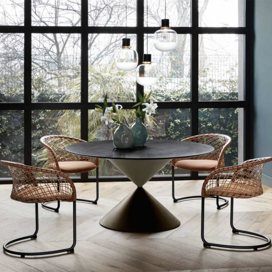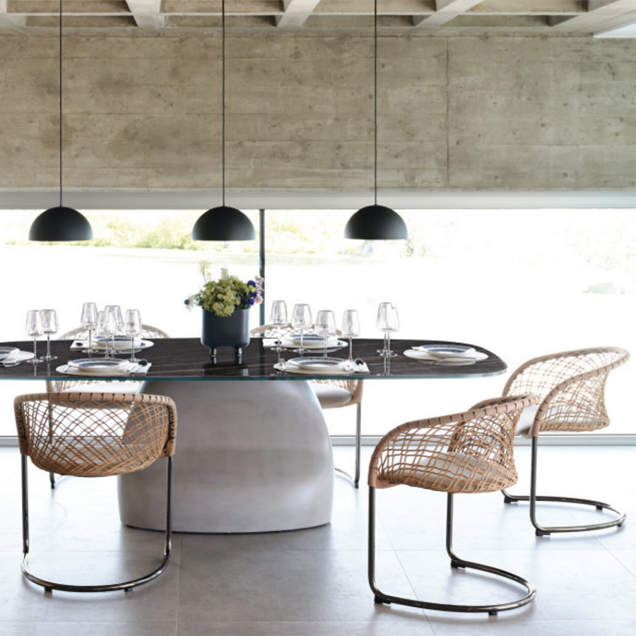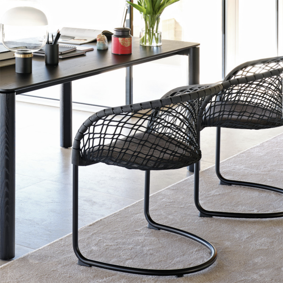 D'une élégance marquée, le fauteuil P47 étend son charme à l'environnement qui l'entoure. Sous les rayons du soleil, il crée un jeu d'ombre et de lumière, donnant un effet scénographique de grand impact.