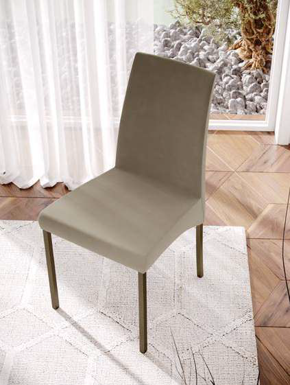 Chaise Elias d'Ingenia avec structure en acier laqué, assise et dossier rembourrés recouverts dans de nombreuses finitions.