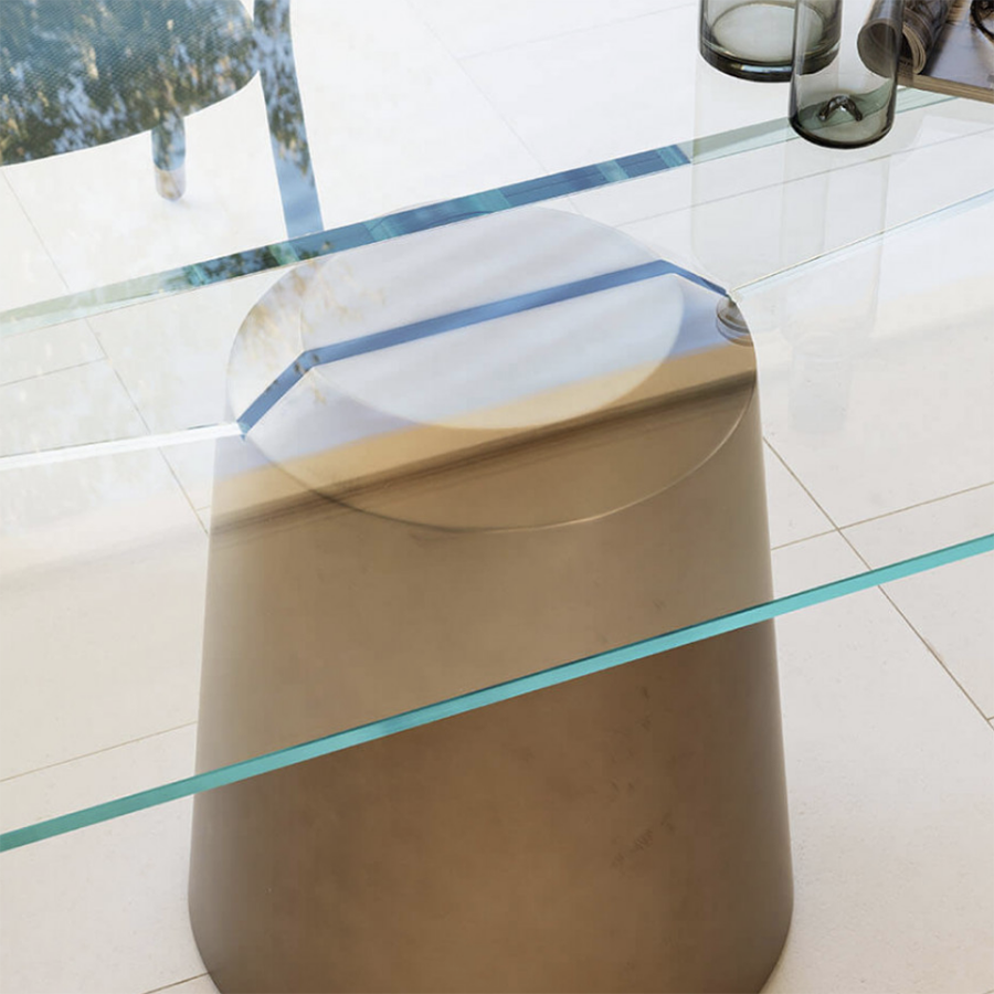 Plateau disponible en version rectangulaire 200x100 ou ronde ø140, en verre transparent ou fumé.