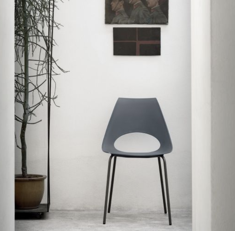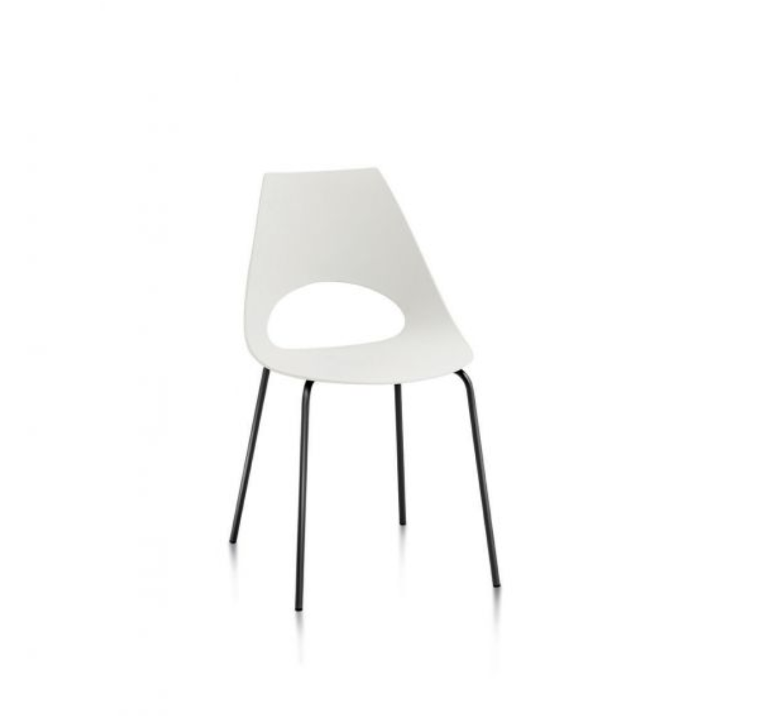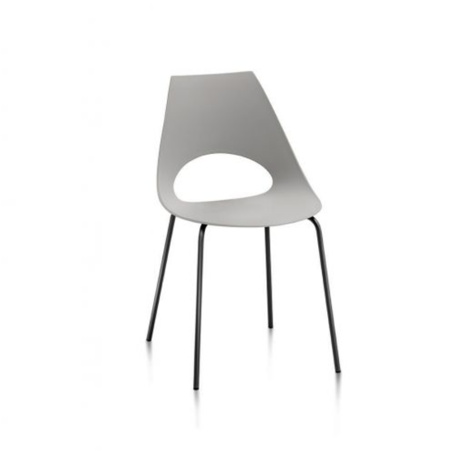 Chaise Shark de Bontempi avec structure en acier laqué ou chromé, l'assise enveloppante et ergonomique est en polypropylène. La forme du dossier est très pratique et facile à manipuler.
