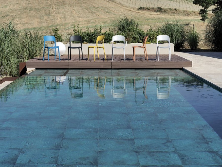 La chaise empilable Gipsy de Bontempi est fabriquée en polypropylène et fibre de verre recyclable et est disponible dans de nombreuses couleurs.