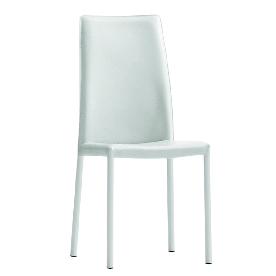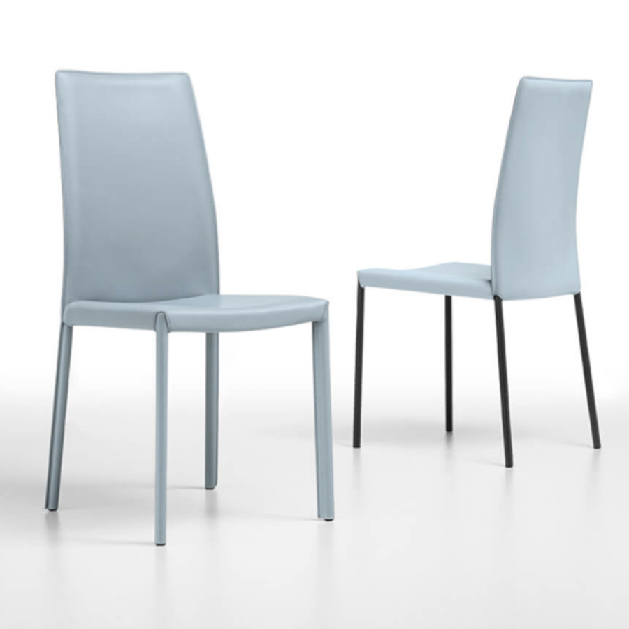 Chaise Nuvola avec piètement à quatre pieds en métal peint. Coque disponible en cuir, tissu, cuir et éco-cuir.