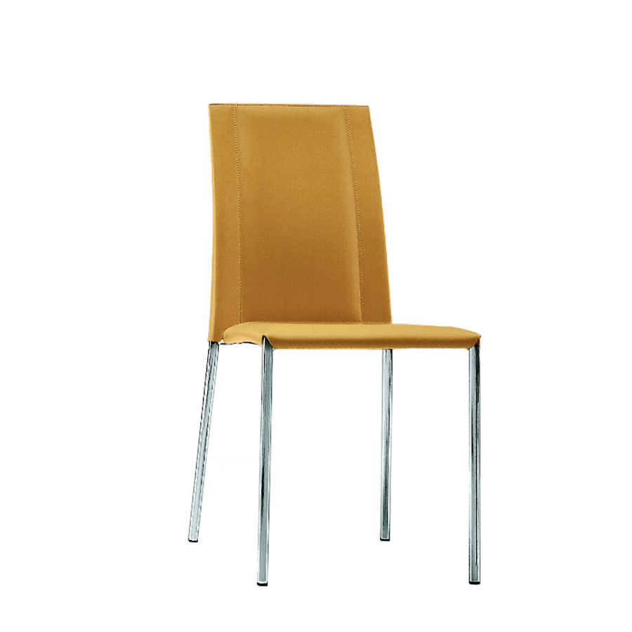 Chaise Silvy avec structure à quatre pieds en acier peint ou chromé. L'assise et le dossier sont recouverts de cuir.