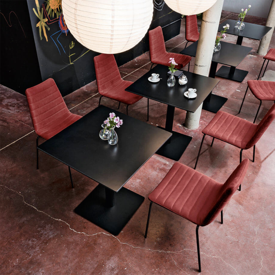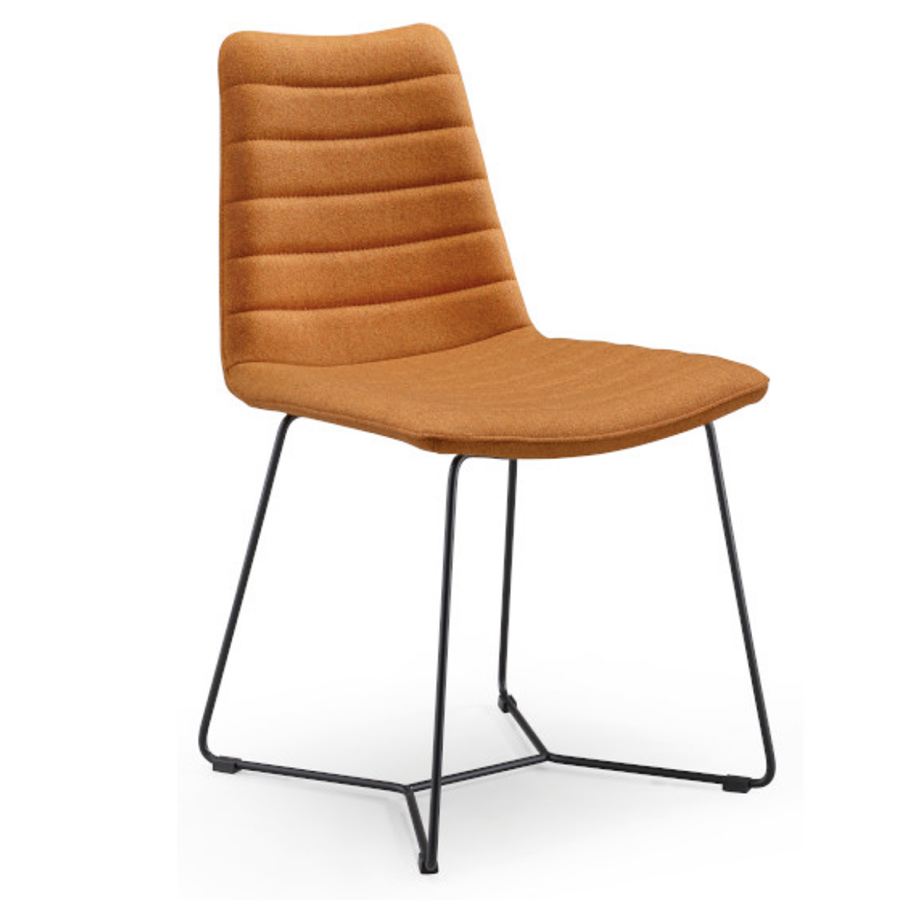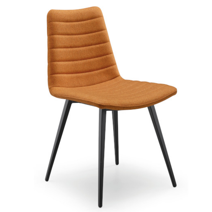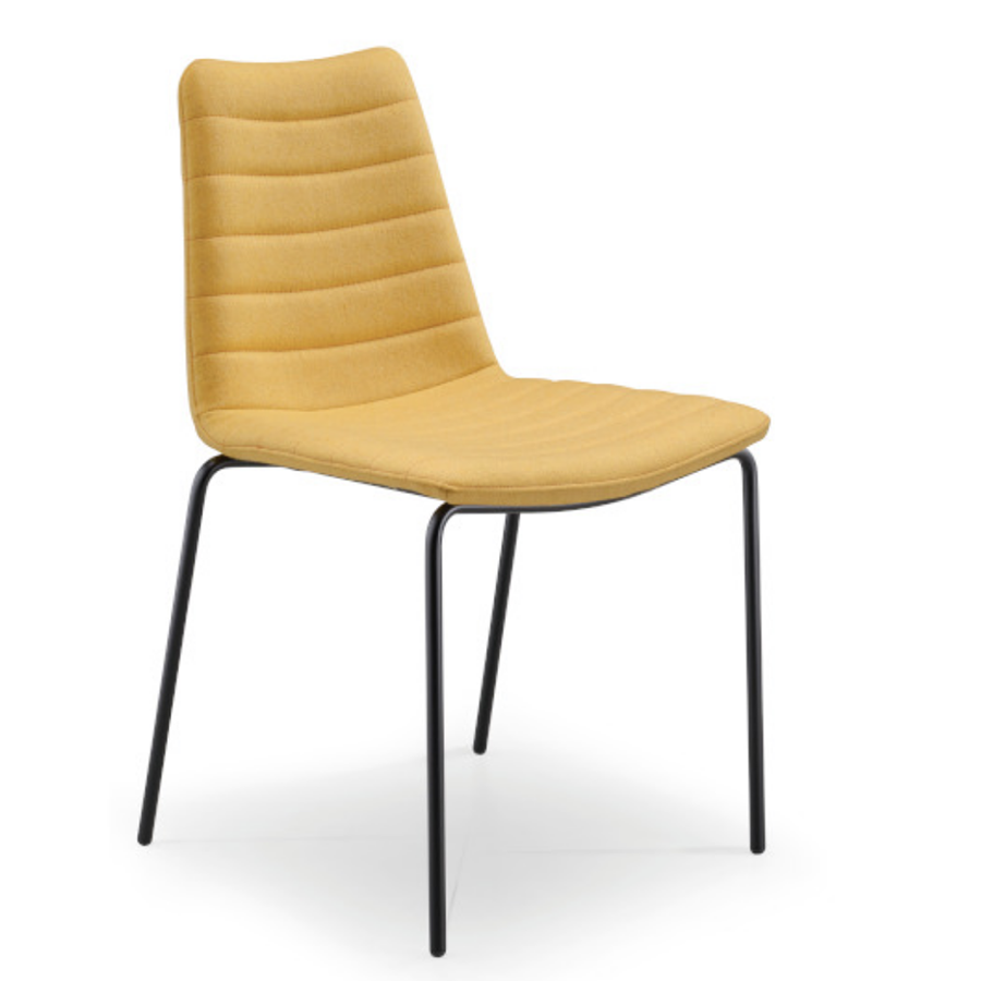 Chaise empilable Cover S M_M avec piètement en acier à quatre pieds ou à luge, avec coque rembourrée.