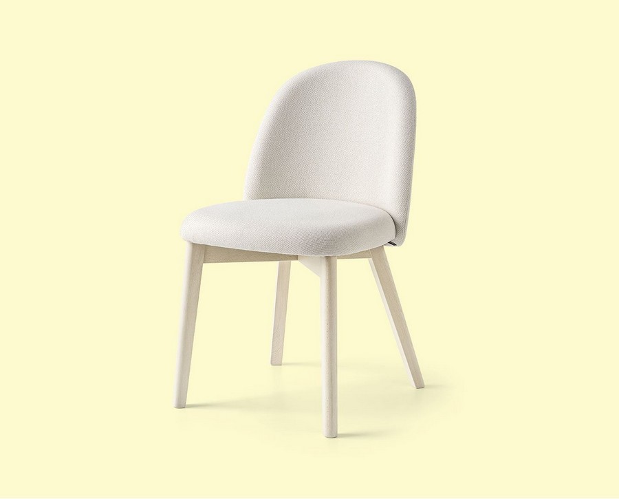 Chaise Tuka CB1994 de Connubia avec quatre pieds en bois de hêtre. Coque fixe rembourrée et tapissée avec dossier enveloppant et assise arrondie.