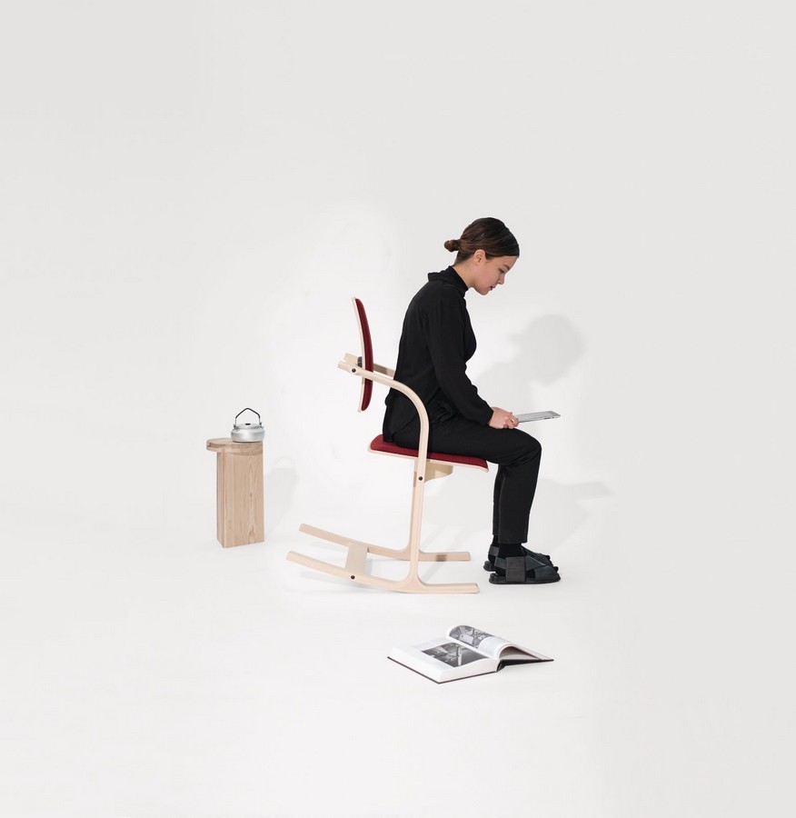 Chaise ergonomique Actulum de Varier. Actulum avec bascule qui en fait une chaise parfaite aussi bien pour le travail que pour la vie quotidienne, même à la maison. Inspirée des chaises berçantes nostalgiques, cette chaise a reçu une touche moderne. Une chaise qui offre un confort et une détente inégalés. La structure en bois suit en douceur chaque mouvement de votre corps et le dossier bouge d'avant en arrière, sans aucun effort. Ce mouvement léger renforce les muscles et prévient les tensions au niveau du cou et des épaules.