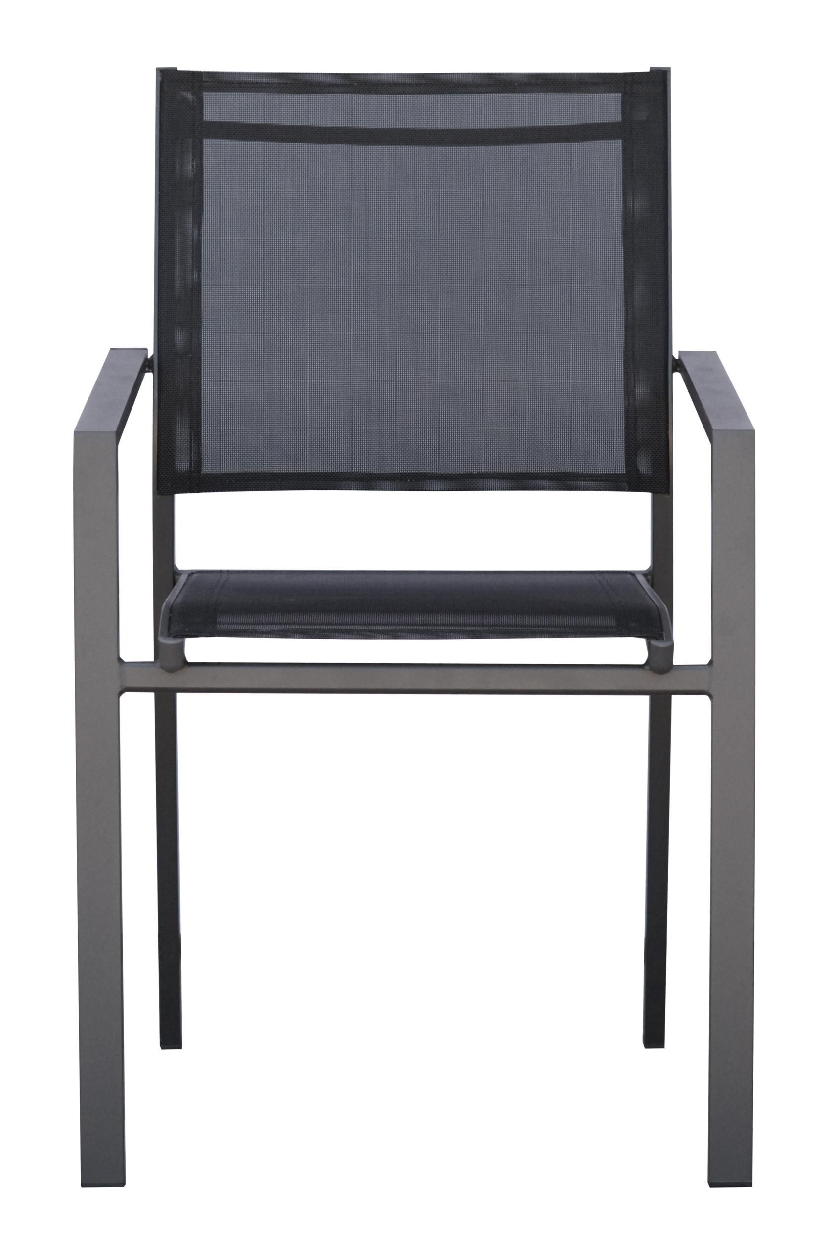 Aluminium ANTHRACITE et textilène NOIR, avec accoudoirs, empilable.