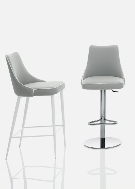 Tabouret Clara de Bontempi disponible en deux hauteurs différentes et dans la version pivotante et réglable en hauteur. Il se caractérise par la structure en acier laqué en différentes finitions. Le corps est entièrement rembourré et tapissé et présente la particularité des bords qui peuvent être réalisés dans la même couleur que le revêtement choisi ou en contraste et est disponible en différentes finitions. La version du tabouret Clara avec bord contrasté met encore mieux en valeur le profil, en mettant en valeur les lignes douces et le design élégant et rétro, revisité dans une touche moderne qui donnent au tabouret un style essentiel et raffiné.