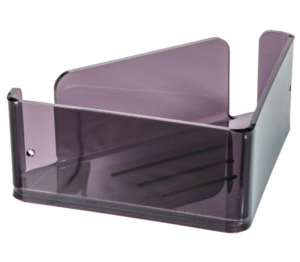 Etagère d'angle de douche en acrylique transparent. Vis de fixation en acier incluses.