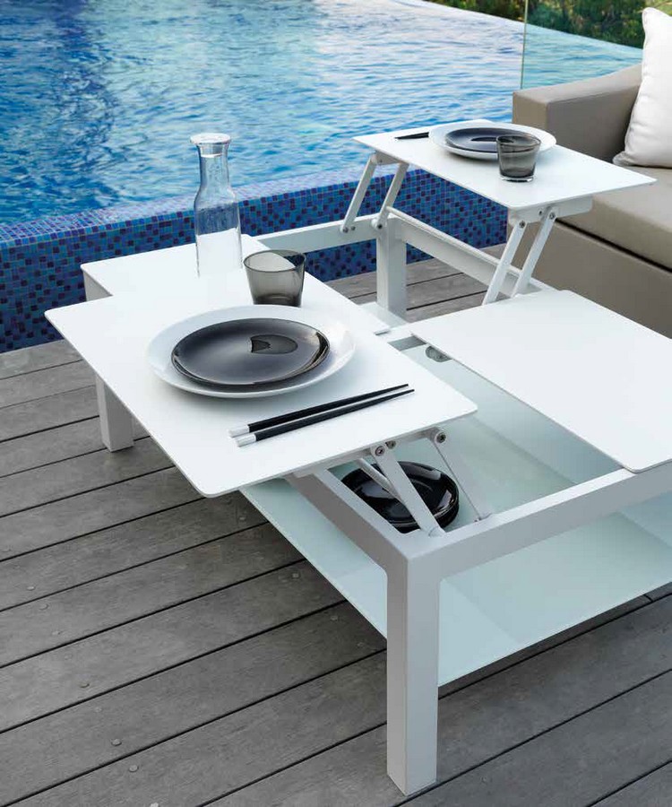 Talenti présente la ligne Chic de tables basses extensibles. Entièrement réalisées en aluminium laqué, disponibles en deux finitions (blanc et gris tourterelle), elles s'adaptent à tous les espaces extérieurs. Grâce à leur mécanisme de pliage, le plateau se relève et se rapproche de vous. Proposées en deux dimensions, elles apportent une touche d'élégance à vos terrasses et jardins.