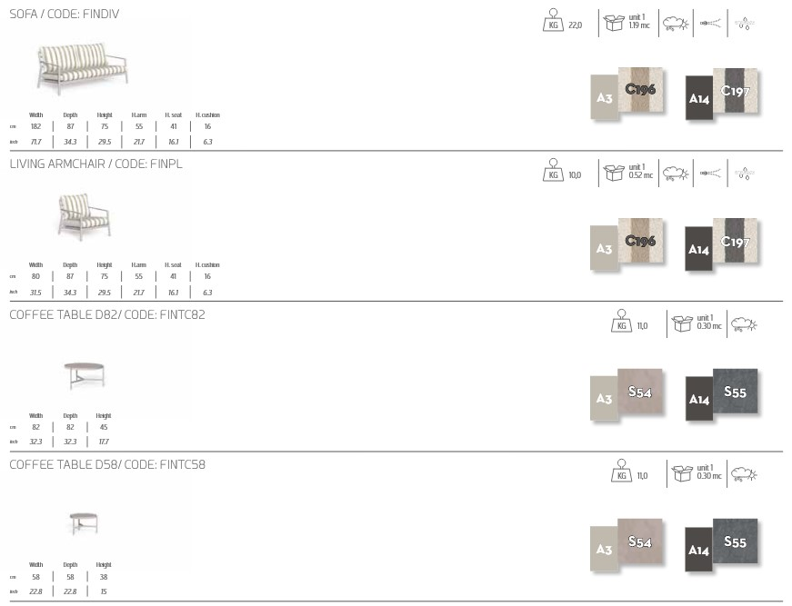 Des lignes épurées, des volumes élancés et un tissu rayé composent une silhouette élégante et discrète. Finn ne cherche pas à éblouir, mais à se fondre naturellement dans le paysage, transformant terrasses, jardins et toits-terrasses en espaces de sérénité fonctionnelle.