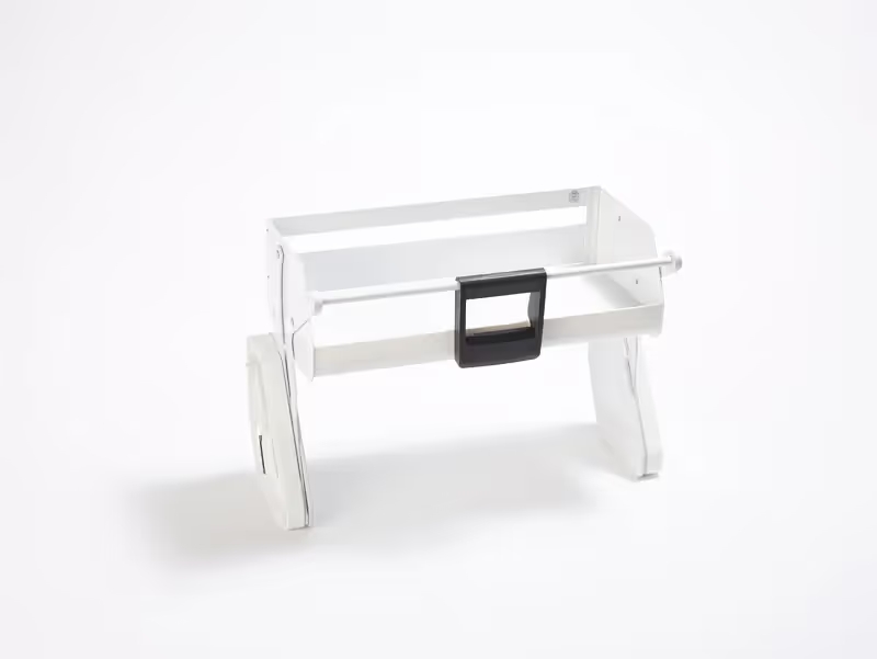 Il s'utilise d'une seule main. L'étagère supérieure se déplace d'un seul mouvement élégant, vers le bas et devant le meuble. Il est ainsi encore plus facile d'accéder aux objets à ranger.
