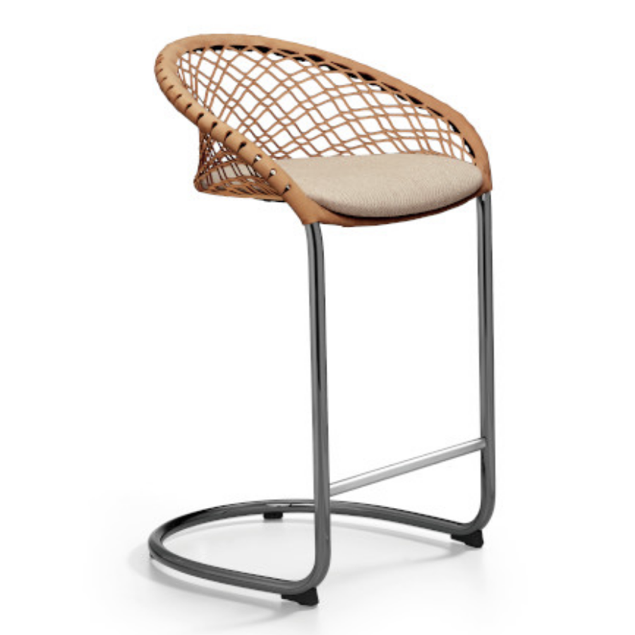 Tabouret P47 en métal avec dossier en cuir recouvert de tissu ou de cuir par M