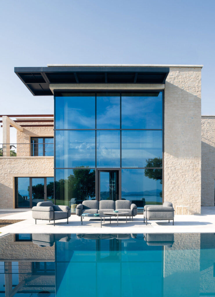 Le fauteuil bas Hug de Vermobil se caractérise par une structure géométrique minimale et de grandes assises qui, comme son nom l'indique, ressemblent à une étreinte.