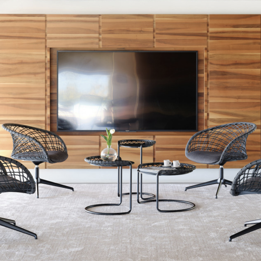 L'attente se transforme en une expérience raffinée. Grâce au rembourrage doux, qui se lie bien à la base pivotante en chevalet, le salon P47 garantit un siège accueillant parfait pour les environnements professionnels et les bureaux privés les plus modernes.
