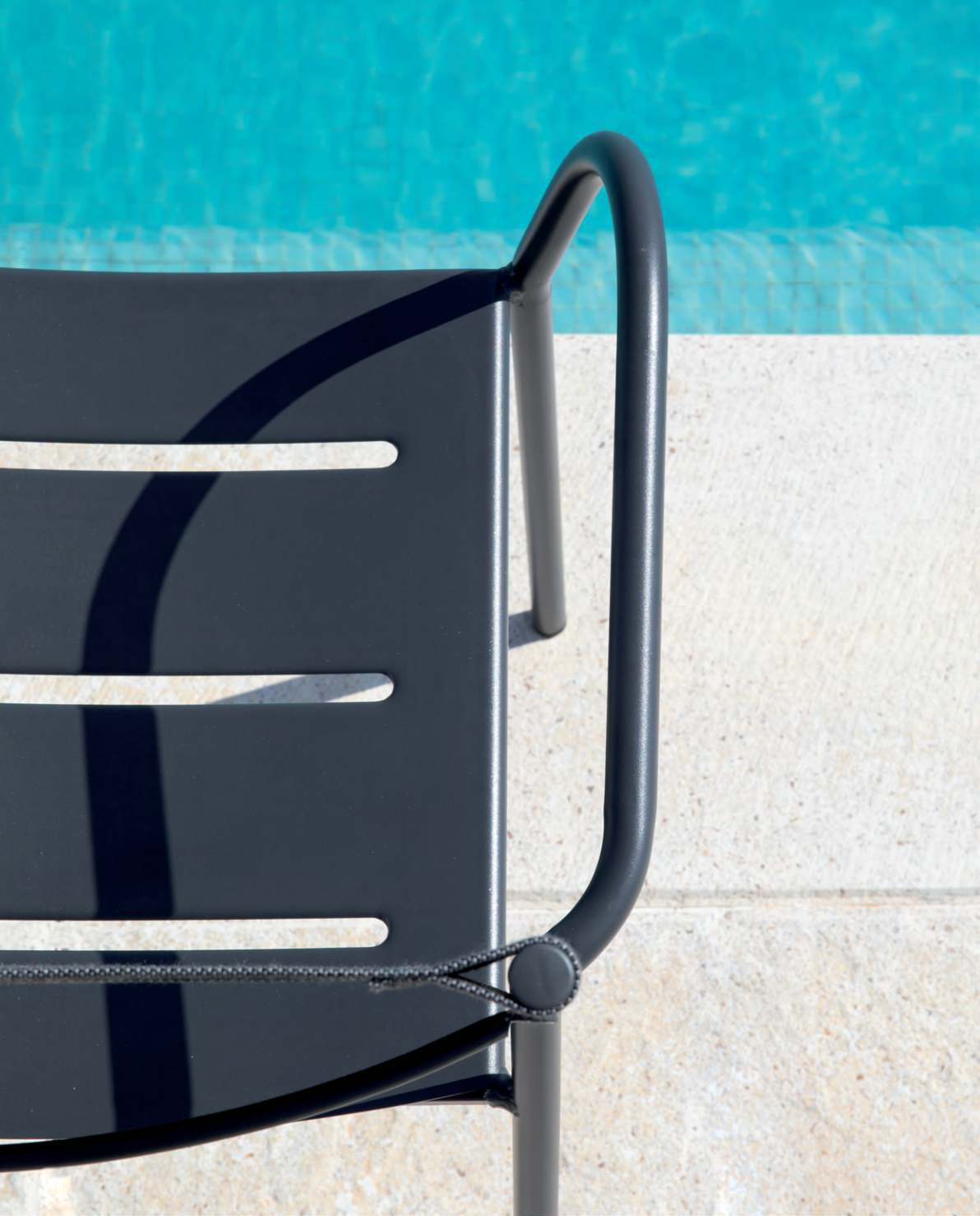 Chaise Vera de Vermobil. Un design simple qui exprime la personnalité d'une chaise à la silhouette élégante et intemporelle. Avec sa structure tubulaire, son assise perforée, son coussin d'assise confortable - particulièrement large et confortable - et son dossier en tissu pour un plus grand confort, il est enrichi par des combinaisons de couleurs vives entre les matériaux.