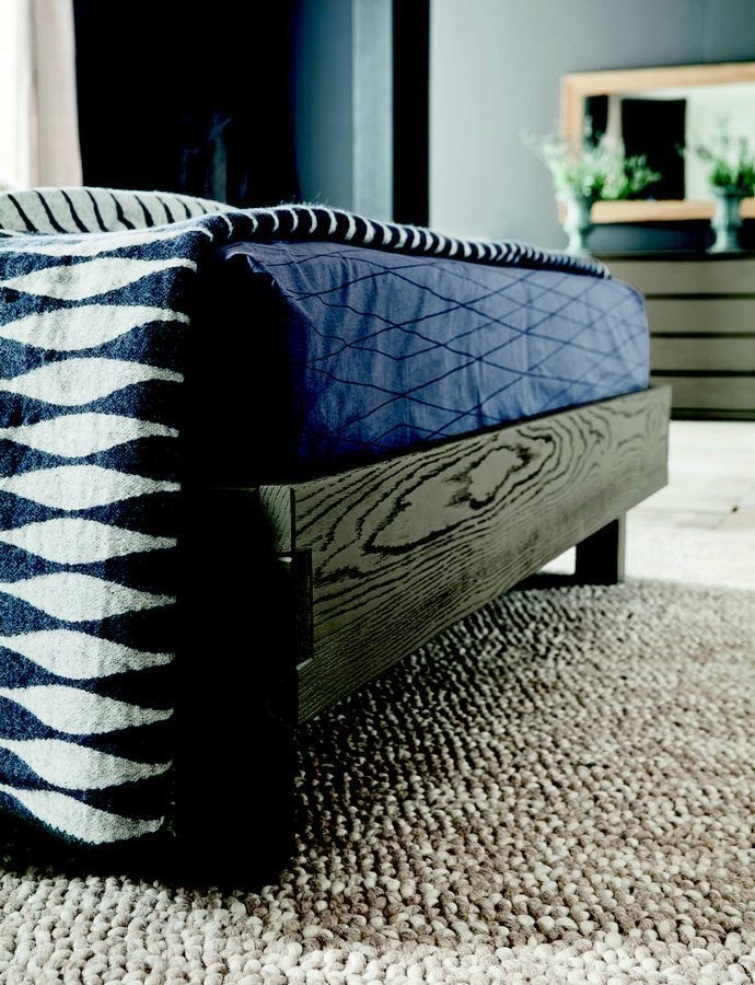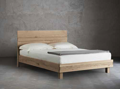 La structure de la tête de lit, les longerons, les pieds et le pied de lit sont en chêne européen massif. Le fond du modèle avec conteneur est constitué de panneaux de particules de bois (classe E1 à faible teneur en formaldéhyde) recouverts de tissu satiné gris neutre. Colles vinyliques à base d'eau et résines d'urée conformes à la réglementation UNI-CEE.
