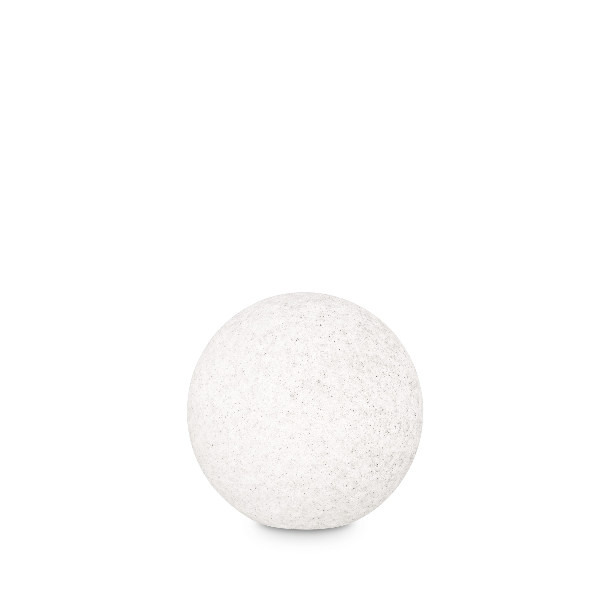 Lampadaire d'extérieur DORIS PT1 D30 d'Ideal Lux avec diffuseur en plastique effet granit gris chiné. Livré avec cheville et piquet pour fixation au sol. Ampoule exclue.