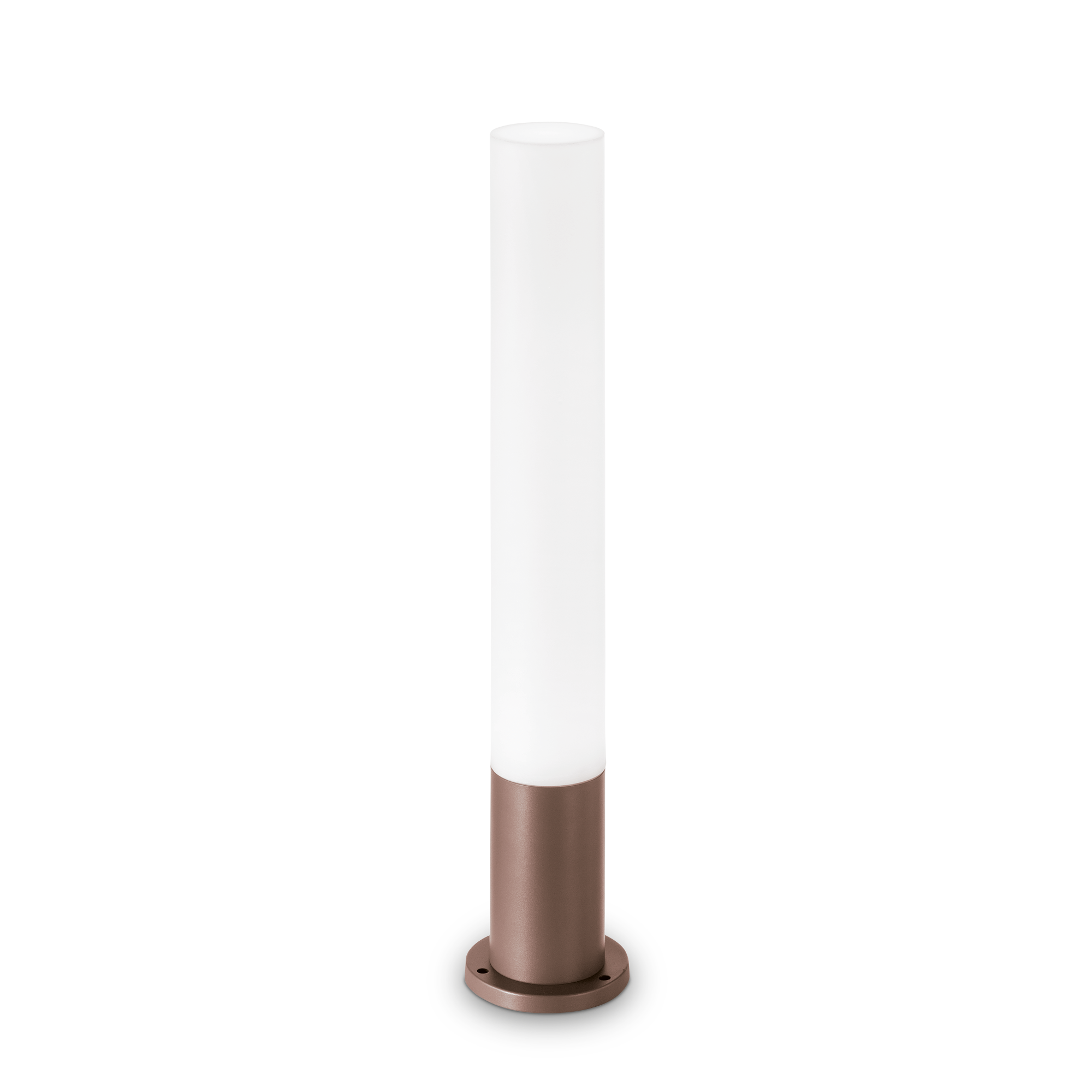 Lampadaire d'extérieur rond café EDO OUTDOOR PT1 d'Ideal Lux avec cadre en fonte d'aluminium thermolaqué couleur café. Diffuseur en polycarbonate blanc. Ampoule exclue.
