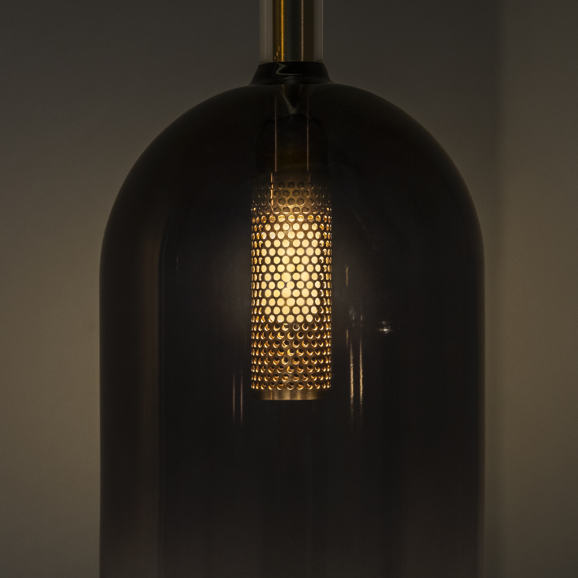 Lustre suspension cylindre EMPIRE SP1 d'Ideal Lux avec structure en métal doré et rosace à fermeture magnétique sans vis. Câble PVC noir. Diffuseur en verre transparent avec abat-jour gris. Ampoules incluses.