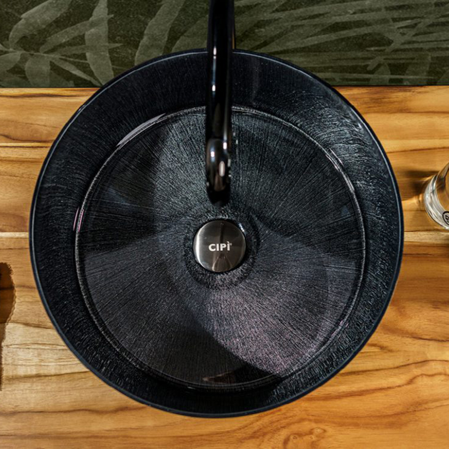 Le verre soufflé et les décorations en résine entièrement réalisées à la main transforment cet évier en un bijou. Le travail extrêmement précis, le caractère unique de chaque exemplaire et l'attention portée aux détails communiquent toute la passion que seul un objet Made in Italy peut transmettre. Extrêmement élégant, mais en même temps toujours prêt pour un usage quotidien et parfait pour résister aux pires traitements grâce à la finition de protection externe et à la cuisson spéciale à 80°.