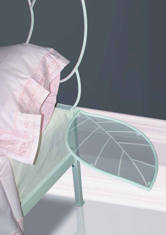Possibilité d'ajouter une paire de tables de chevet Foglia de la même couleur que le cadre de lit avec un plateau en verre transparent comme indiqué sur la photo