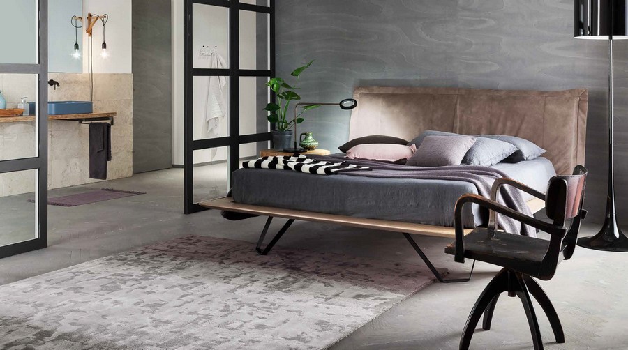 Lit double Diamante d'Altacorte avec tête de lit en planches de chêne massif en plusieurs finitions et couleurs ou rembourrée et recouverte de tissu, éco-cuir et cuir. Structure du cadre de lit également en bois de chêne. Caractérisé par trois pieds en fer possibles au choix.