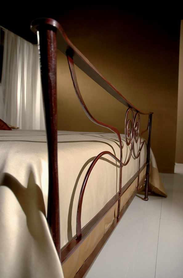 Lit double Kalì de Pama Lits en fer forgé. Un lit disponible en trois versions différentes : tête de lit seule, tête de lit avec cadre de lit ou tête de lit et pied de lit. Le lit est disponible en différentes finitions. Un produit design avec un souci d'élégance. Les lits Pama Letti se distinguent par le pourcentage différent de fer utilisé dans la phase de production, passant d'un produit tubulaire à un autre en fer massif. Le modèle Kalì d'un carré et demi est produit avec un pourcentage de 100%. Forgé et décoré à la main avec des finitions à motifs floraux et des formes audacieuses pour créer un environnement de détente en toute sécurité mais en même temps aussi de confort et de sécurité grâce au soin minutieux apporté à chaque détail. Possibilité d'ajouter le coussin pour la tête de lit avec un supplément
