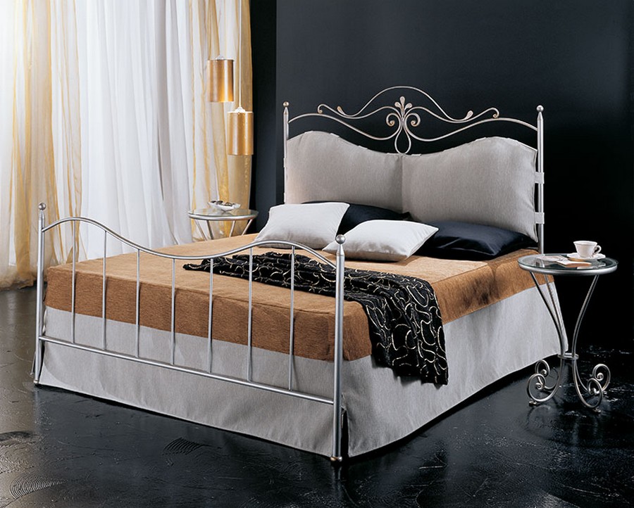 Lit double Frigerio de Pama Lits en fer forgé. Un lit disponible en trois versions différentes : Tête de lit seule, Tête de lit avec cadre de lit ou Tête de lit et pied de lit. Le lit peut être disponible en différentes finitions. Les lits Pama Letti se distinguent par le pourcentage différent de fer utilisé dans la phase de production ; nous passons d'un produit tubulaire à un autre en fer massif.Le modèle Frigerio est produit avec un pourcentage de 75-25%.