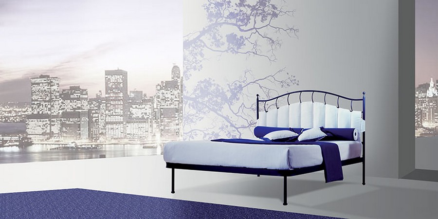 Lit double Teseo de Pama Lits en fer forgé. Un lit disponible en trois versions différentes : Tête de lit seule, Tête de lit avec cadre de lit ou Tête de lit et pied de lit. Le lit peut être disponible en différentes finitions. Les lits Pama Letti se distinguent par le pourcentage différent de fer utilisé dans la phase de production ; on passe d'un produit tubulaire à un autre en fer massif.Le modèle Teseo est produit avec un pourcentage de 75-25%.