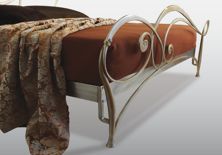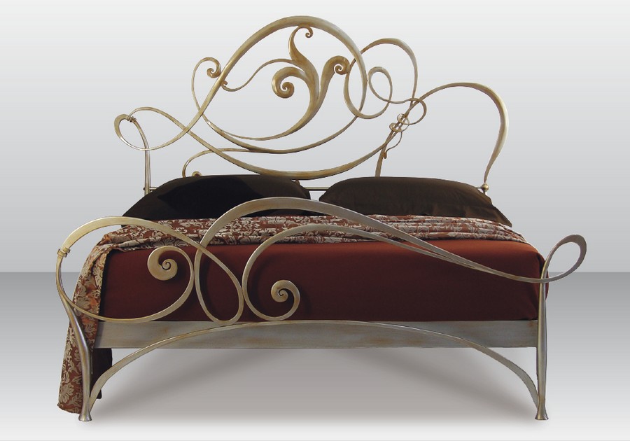 Lit double Venaria de Pama Letti en fer forgé. Un lit disponible en trois versions différentes : tête de lit seule, tête de lit avec cadre de lit ou tête de lit et pied de lit. Le lit est disponible en différentes finitions. Un produit richement artisanal, unique et aux motifs splendides au design raffiné. Les lits Pama Letti se distinguent par le pourcentage différent de fer utilisé dans la phase de production, passant d'un produit tubulaire à un autre en fer massif. Le modèle Venaria est produit avec un pourcentage de 99 à 75 %. Forgés et décorés à la main, ils garantiront à votre chambre une élégance et un goût uniques. Possibilité d'ajouter le coussin pour la tête de lit avec un supplément