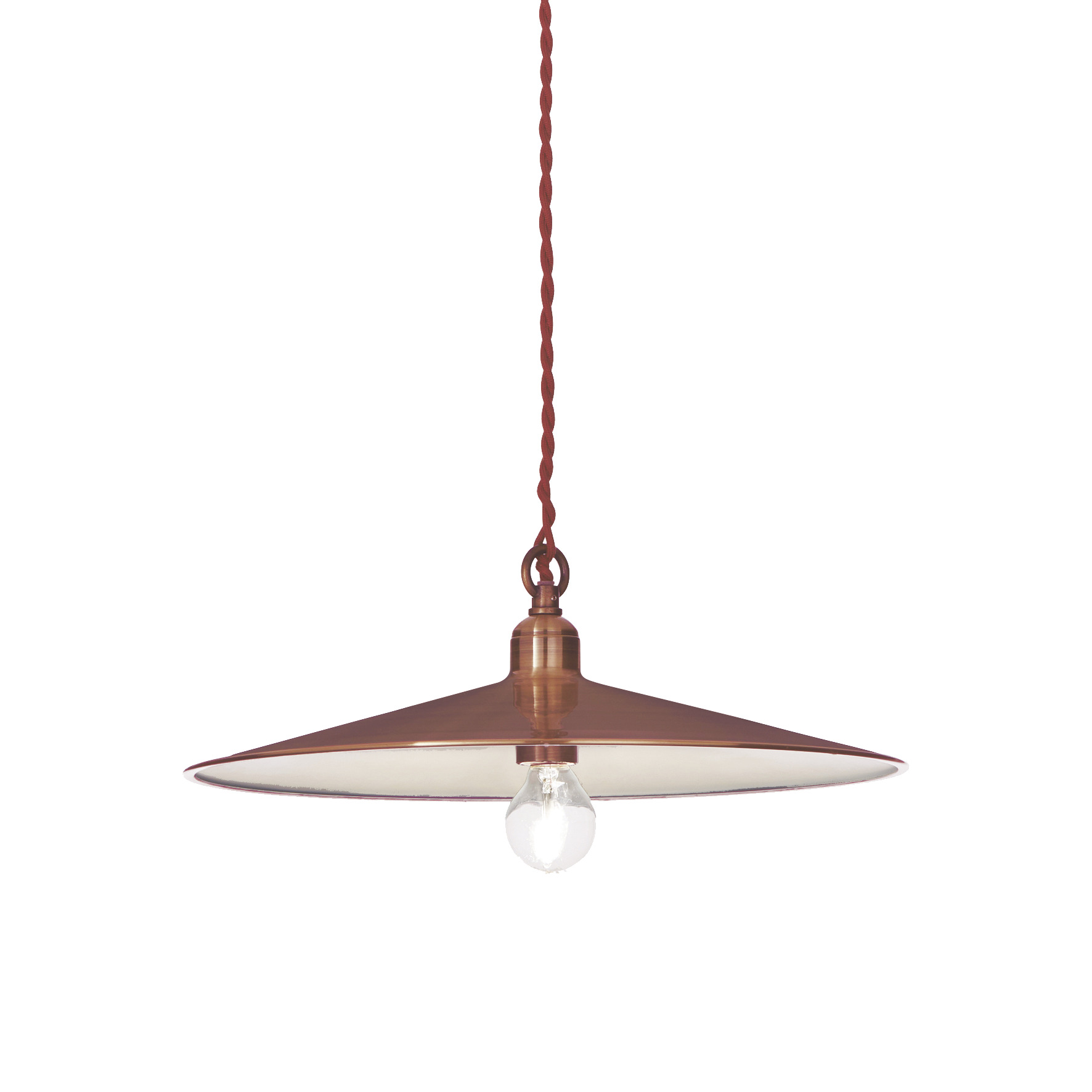 Lustre CANTINA SP1 COPPER d'Ideal Lux avec structure, diffuseur et cache-douille en métal finition cuivre. Câble électrique recouvert de tissu et tressé. Ampoule exclue.