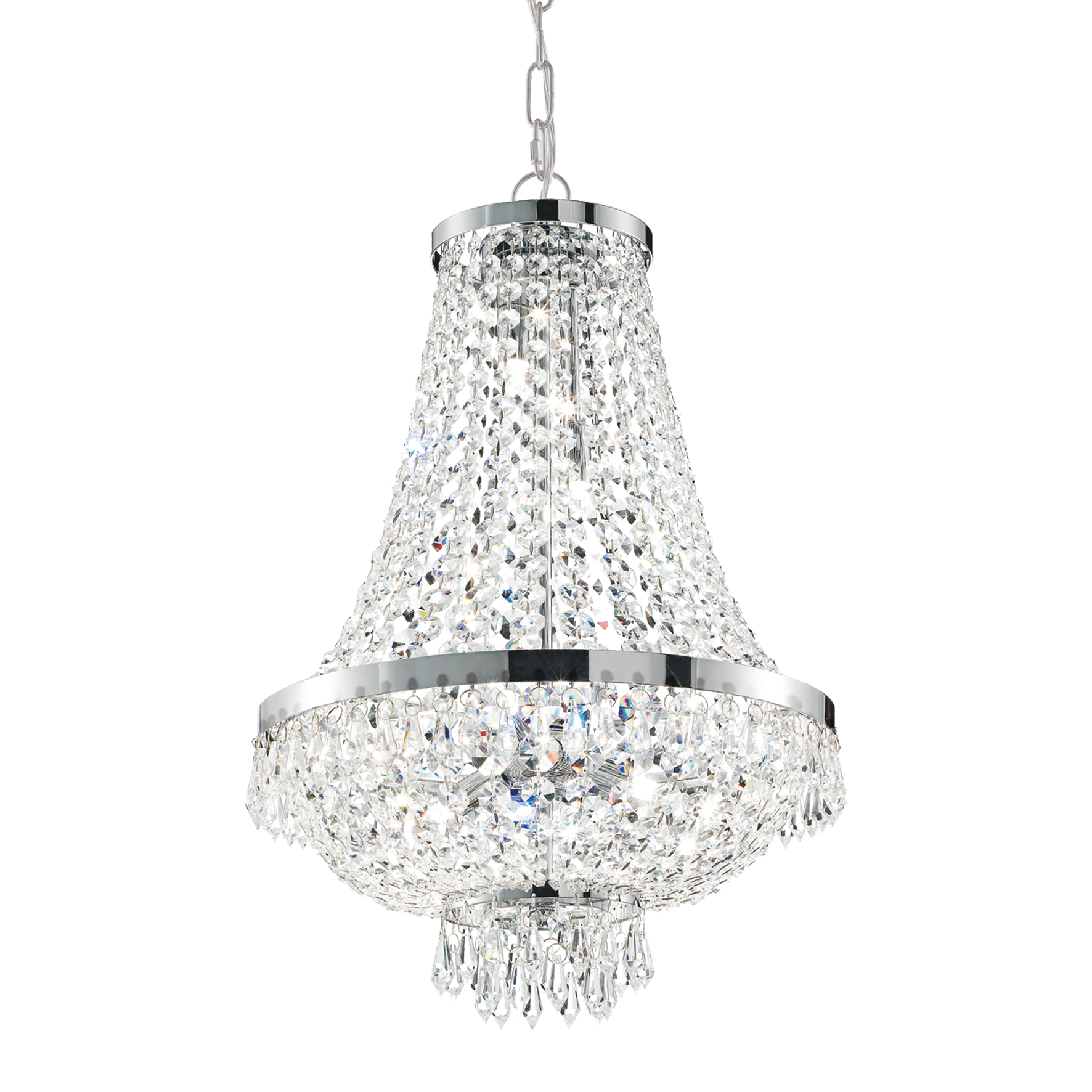 Lustre suspension chromé CAESAR SP12 par Ideal Lux avec structure en métal finition chromée. Éléments décoratifs octogonaux en cristal taillé aux extrémités pointues. Ampoules LED incluses.