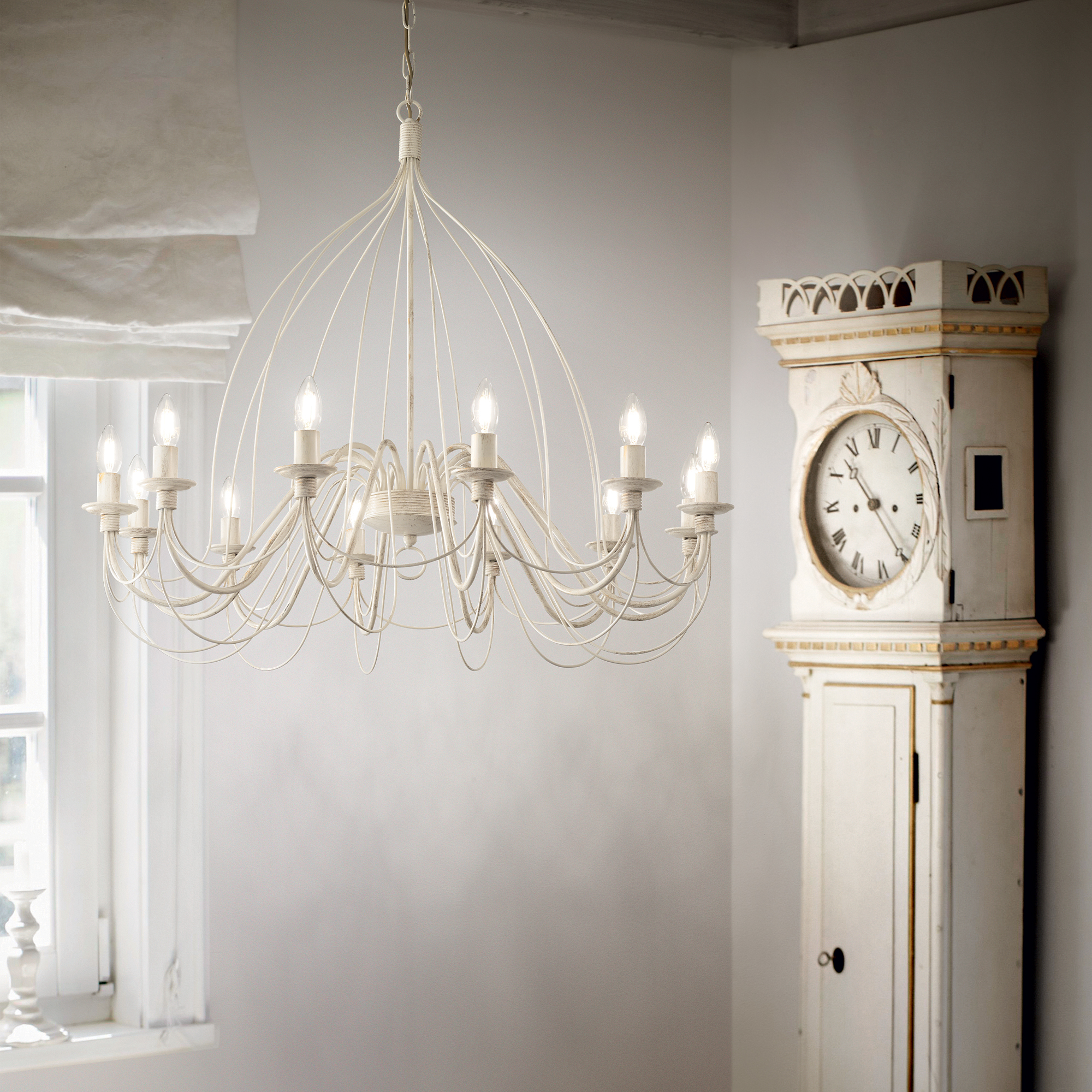 Lustre suspendu Corte sp12 blanc antique par Ideal Lux avec une structure en métal entièrement fabriquée à la main. Finition peinte à la main avec effet vieilli. Version blanche. Ampoules exclues.