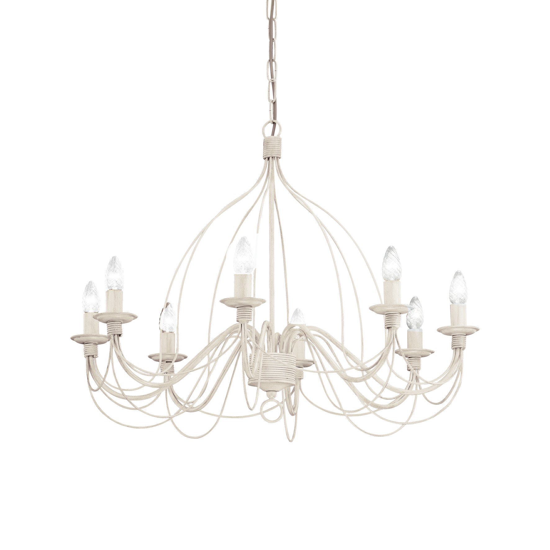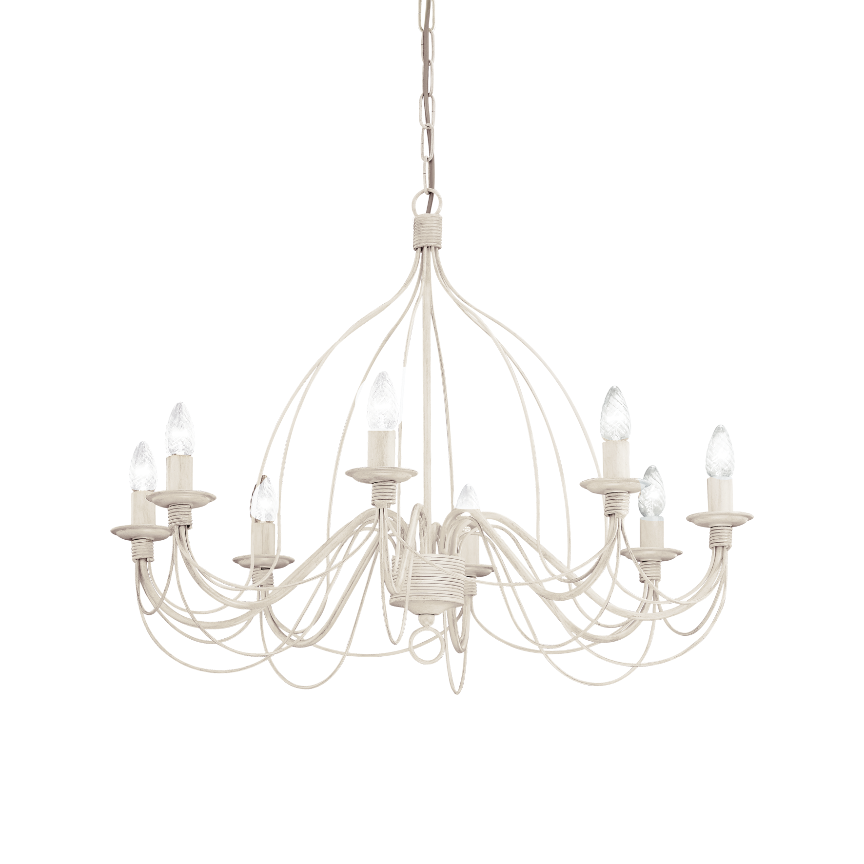 Lustre suspendu Corte sp8 blanc antique par Ideal Lux avec une structure en métal entièrement fabriquée à la main. Finition peinte à la main avec effet vieilli. Version blanche. Ampoules exclues.