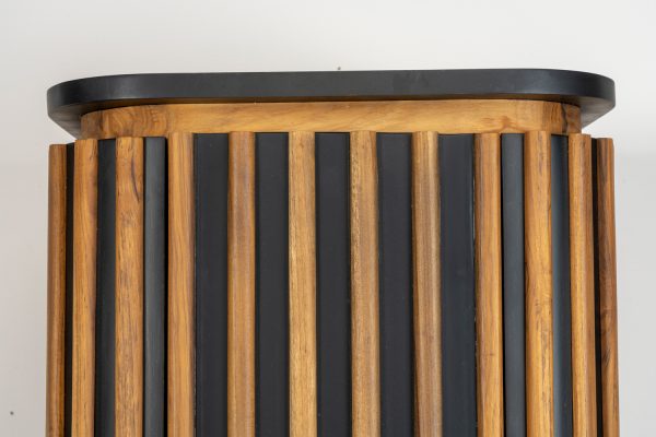 Il ne peut certes pas passer inaperçu pour sa taille, mais encore plus pour son style incomparable. Fabriqué en teck massif et en acajou, le meuble Invilla est immédiatement reconnaissable aux inserts de tiges en teck naturel qui dessinent la surface noir minuit et aux formes courbes sans bords ni poignées.