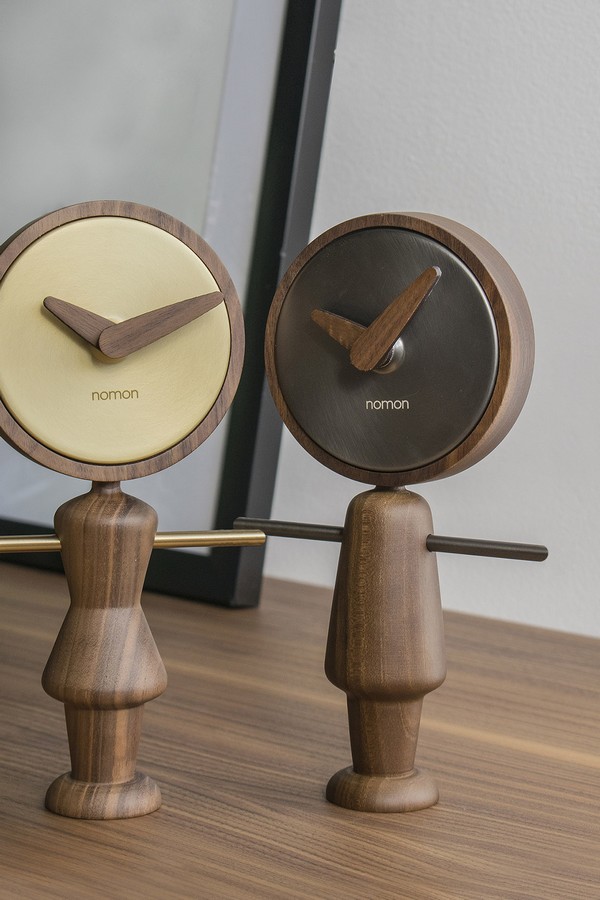 Horloge Nene de Nomon qui combine un corps en bois massif en finition noyer ou chêne avec des détails métalliques. Une montre unique en son genre née de l'inspiration des mannequins des vitrines.