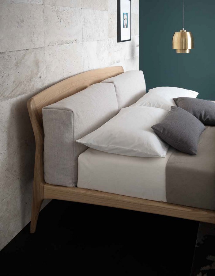 Le lit Nice est entièrement réalisé en chêne européen massif avec des éléments massifs, notamment des montants latéraux et un pied de lit à l'effet arqué sophistiqué, obtenu grâce à un savoir-faire artisanal de précision. Disponible en deux versions, « court » et « long », cette dernière étant dotée de deux coussins en plumes et flocons de polyester, avec des housses amovibles en tissu, cuir ou éco-cuir.