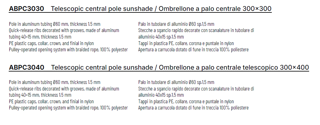 Le parasol télescopique à mât central Abri de Vermobil est une solution élégante et fonctionnelle pour aménager les espaces extérieurs et créer une zone ombragée spacieuse. Conçu pour une utilisation dans les jardins, sur les terrasses ou au bord de la piscine, il allie des matériaux résistants et des détails techniques pour une utilisation pratique et durable.