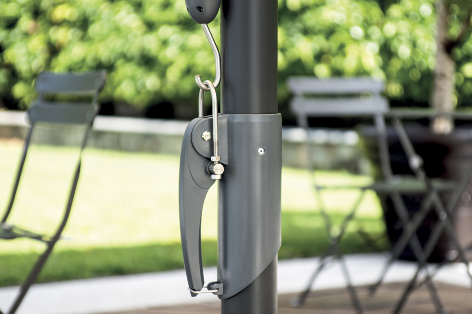 La toile en polyester enduit de résine de 250 grammes, d'une élégante couleur écru, offre une bonne protection contre les rayons du soleil et conserve sa qualité et sa couleur au fil du temps. Doté d'un pied en croix, ce parasol est conçu pour un usage intensif et durable.