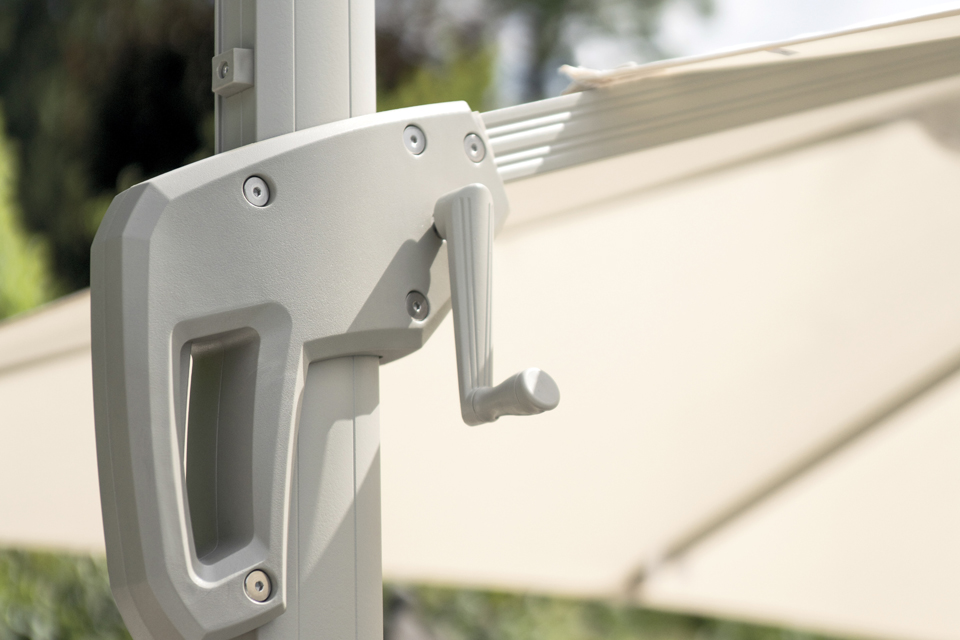 Grâce à sa rotation à 360°, vous pouvez facilement orienter le parasol en fonction de la course du soleil tout au long de la journée, sans avoir à déplacer le pied. La poignée en plastique permet une ouverture et un réglage rapides et faciles.