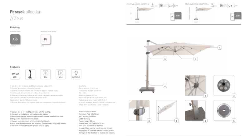 Parasol Zeus de la ligne Parasol de Talenti disponible en deux tailles
