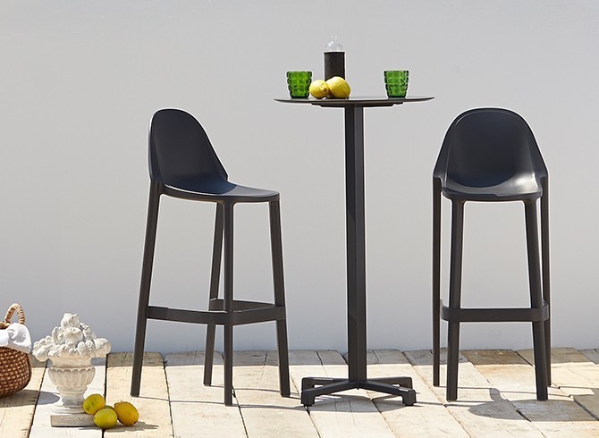 Le tabouret Più de Scab Design est entièrement réalisé en technopolymère renforcé de fibre de verre moulé par air, un matériau plastique résistant qui le rend idéal pour une utilisation en extérieur. Ses lignes épurées lui permettent de s'intégrer parfaitement dans une cuisine, mais aussi dans les bars, pubs et restaurants.
