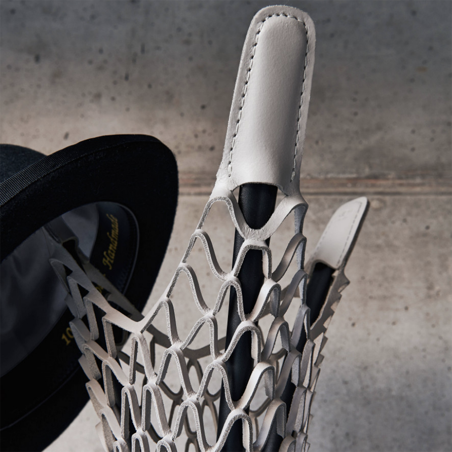 Porte-manteau Guapa avec structure en métal peint et maille en cuir.