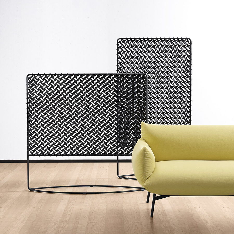 Le paravent Sunrise est un élément de séparation qui vous permet de définir et de redéfinir les espaces, de créer de nouveaux environnements et des coins réservés à l'occasion de manière flexible et non définitive.