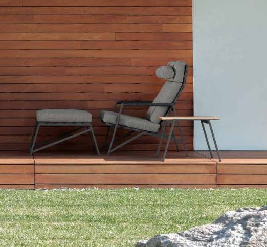 Le pouf d'extérieur complète l'ambiance rustique de la ligne Cottage, aux côtés du canapé et des fauteuils qui rappellent les sièges typiques des vérandas des ranchs américains, réinterprétés dans la recherche d'une synthèse formelle du mobilier contemporain.