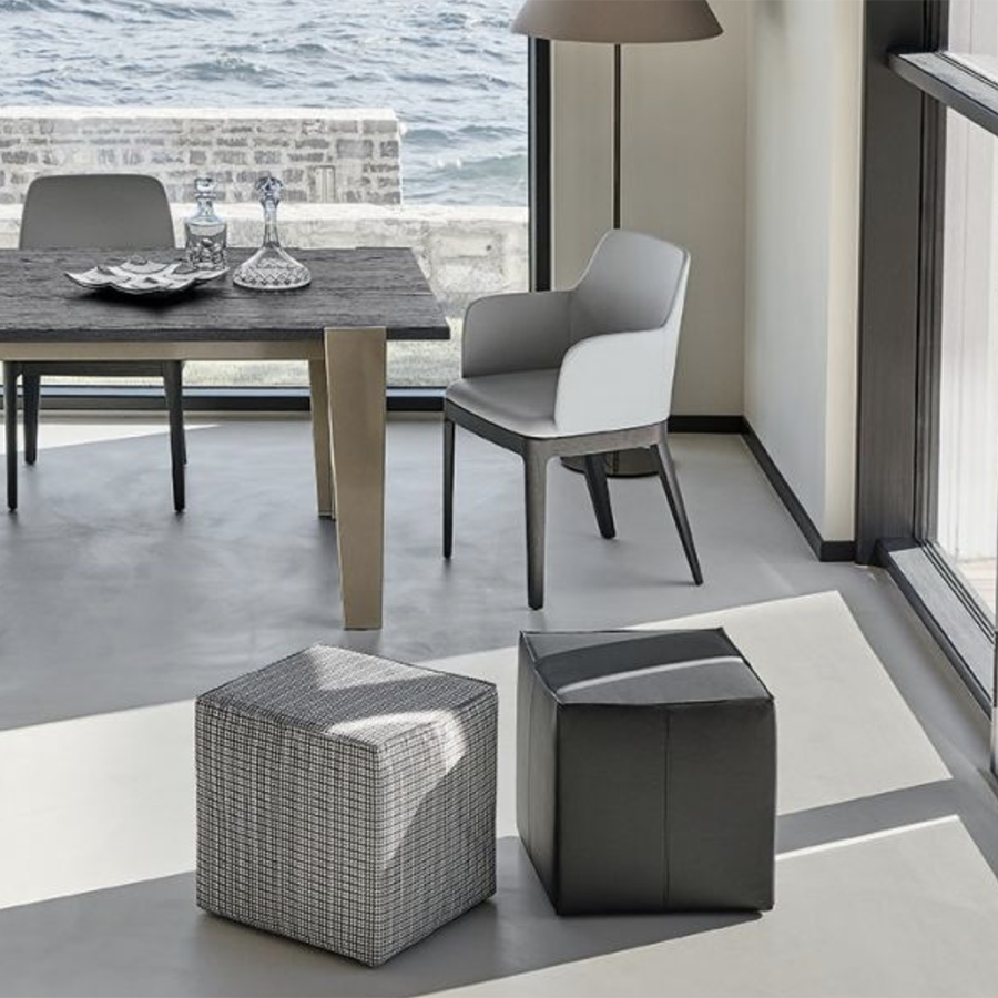 Uchi de Bontempi est un joli et confortable pouf carré et rembourré qui se prête également à être une table basse parfaite et polyvalente pour le salon ou la chambre. Il est disponible en différentes finitions de matériaux et de couleurs.