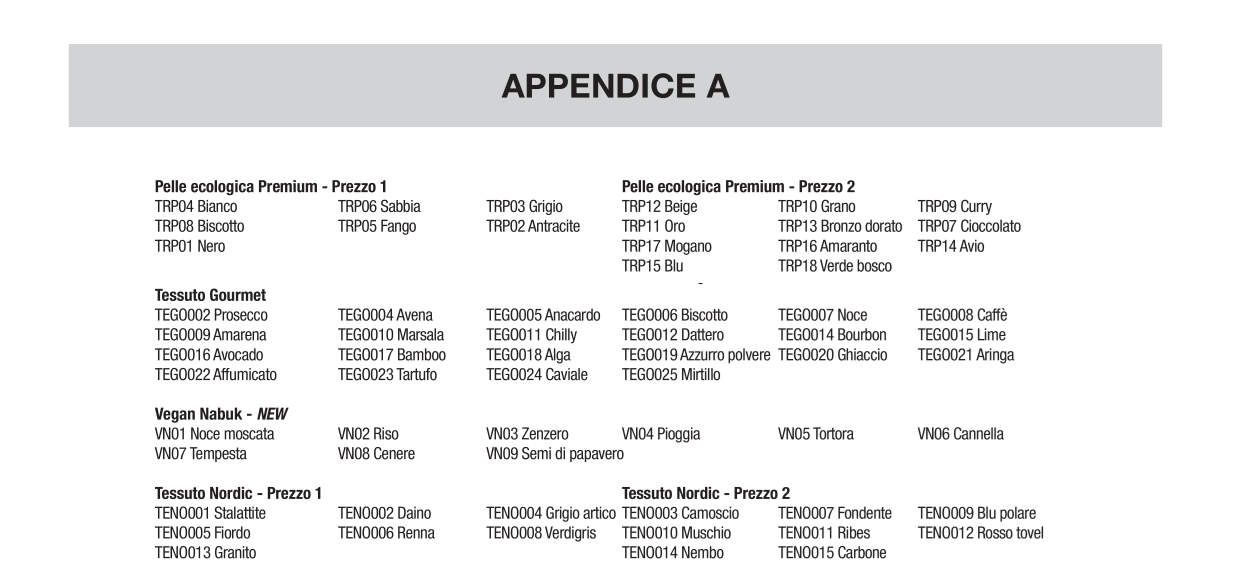 Entrez la couleur et le code respectif de la finition choisie dans la case appropriée en haut [INSÉRER LE CODE DE COULEUR]