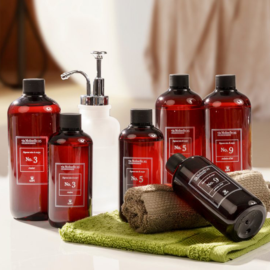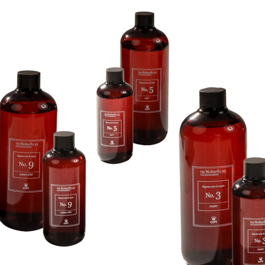 Savons liquides parfumés et précieux, idéaux pour nettoyer délicatement tous les types de peau. Sans parabènes, silicones, SLS, colorants synthétiques. Fabriqué à la main en République de Saint-Marin et réalisé dans le respect de la peau et de l'environnement. Disponible en formats 250 et 500 ml et dans les parfums Resina, Oud+ et Vitis vinifera. A utiliser au quotidien ou à offrir dans le packaging classique, chic et indispensable.